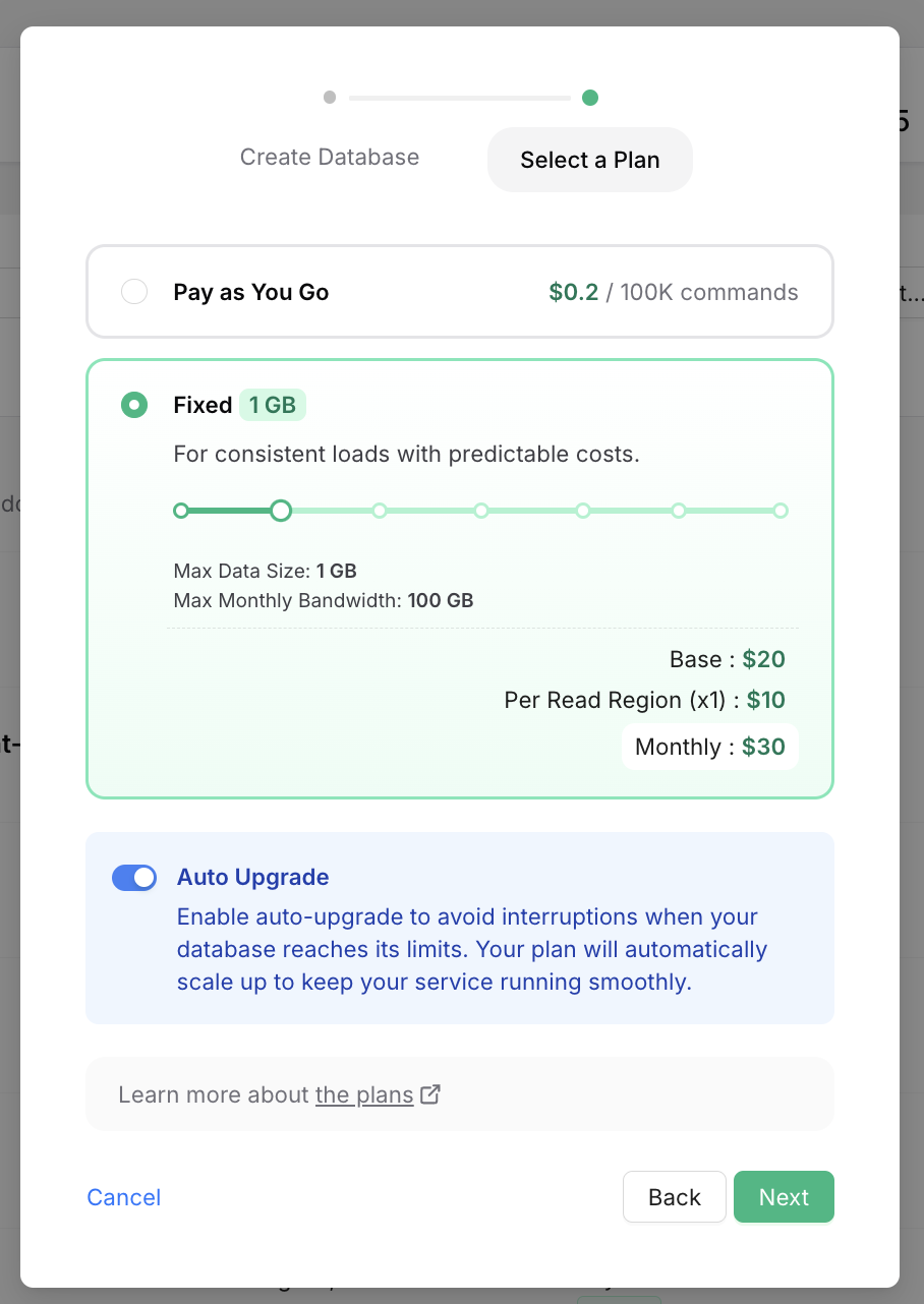 - For storage limits: Instead of rejecting write operations when you reach maximum data size, your database will upgrade to a plan with larger storage capacity.